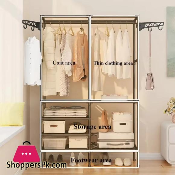 Introducing the Detachable Solid Color Metal Double Row Clothes Rack, a versatile storage solution for your living room or bedroom. This spacious design offers ample room for organizing your clothing, making it perfect for hallways and entryways. The detachable feature allows for easy assembly and disassembly, while the solid metal construction ensures durability. Keep your space tidy and stylish with this functional and modern clothes rack. This product description is ready to be shared with the user.