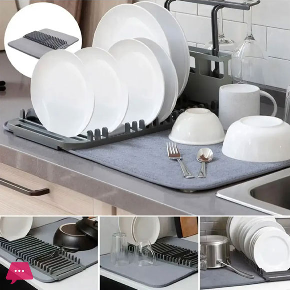 Dish Drying Mat Multipurpose Plates Rack, Microfibre Absorbent Mat Pot Lid Holder