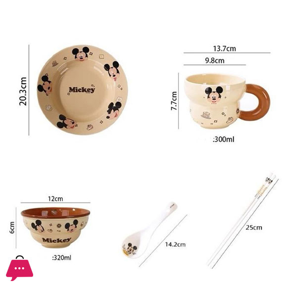 1 set include : bowl,plate,cup,spoon,chopstick (1 each)