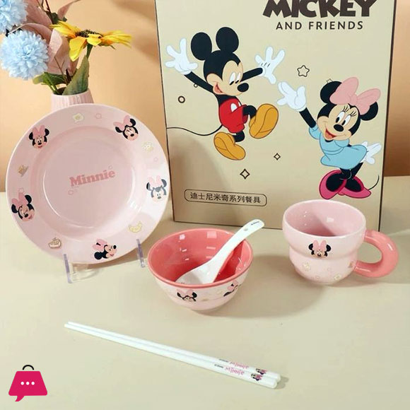 Disney Mickey & Minnie Ceramic Dish Cute Cartoon Meal Tray Microwave Oven Resistant Fruit Plate