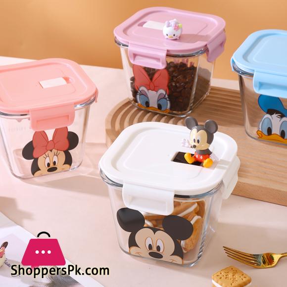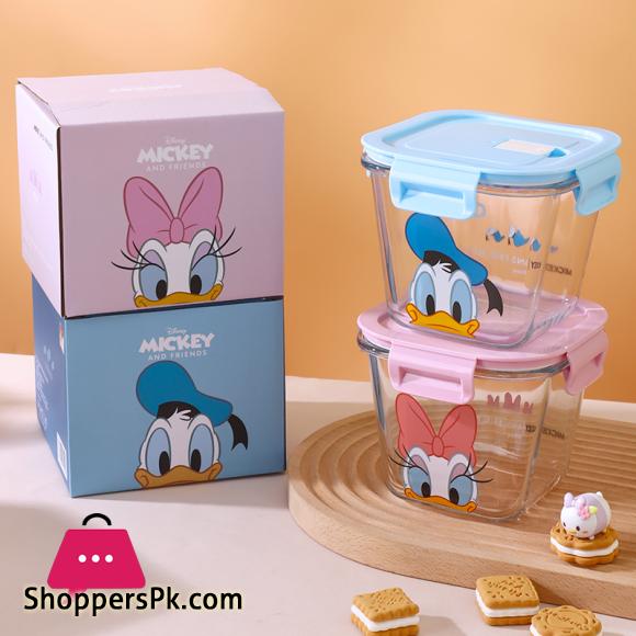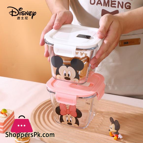 Disney Mickey Minnie Daisy Glass Crisper With Lid Lunch Box Microwave Heating Sealed Box Food-grade Cute Fruit Lunch Box 900ml