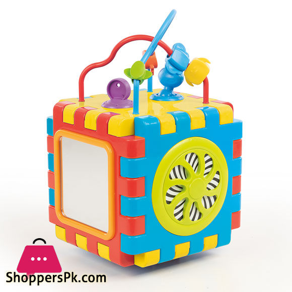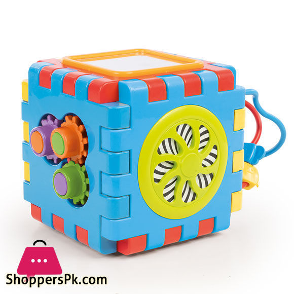 Suitable for children aged 12 months and above. It measures 34.5×23.5×22 cm. It helps children learn colors and geometric shapes. It represents textures that stimulate the baby’s vision, conceptual skills, motor skills, and tactile senses.