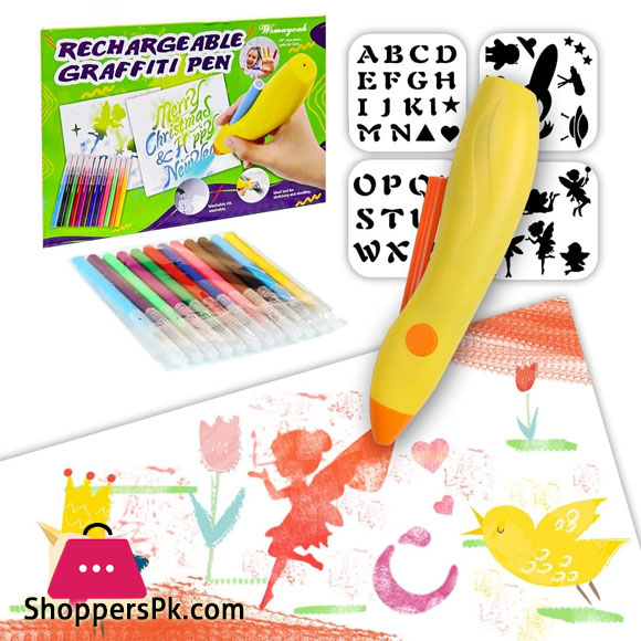 Electric Rechargeable Kids Spray Paint Blow Pen Set Marker Graffiti Supplies Pen 12 Colors Colored Markers Blow Pens Washable Watercolour Paints Pens Art and Crafts Education