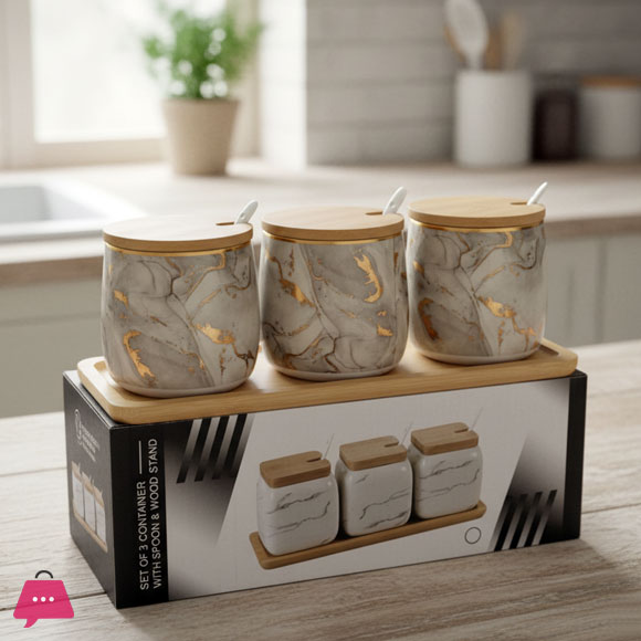 * **Complete Set:** This set includes three ceramic jars, three matching ceramic spoons, and a stylish bamboo stand to keep everything neatly organized and easily accessible.