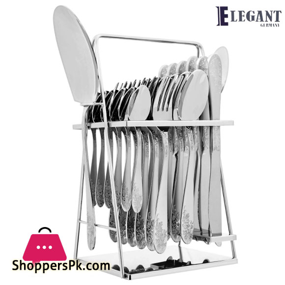 Made from stainless steel, this set includes an elegant holder that will give your dining table a grand look. Ideal for formal dinners and wedding gifts.