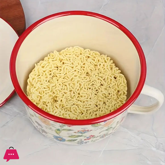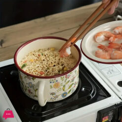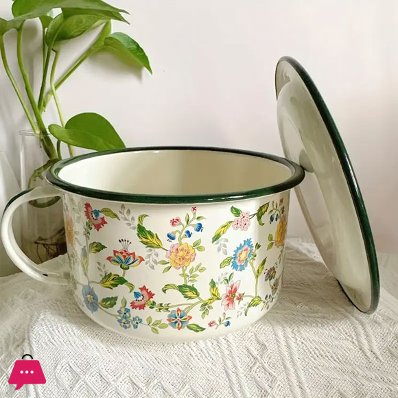 Enamel Bowl with Lid Flower Design Enamelware Bowls for Soup, Noodles, Salad 1 Piece