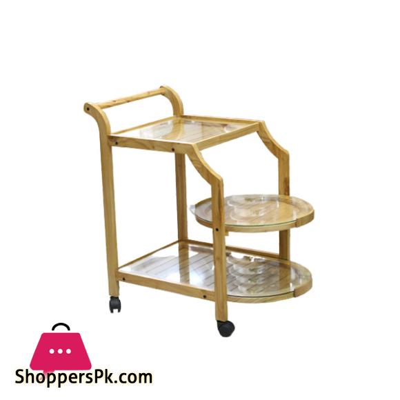 Lamination Lasani Wooden With Printed Glass Tea Serving Trolley