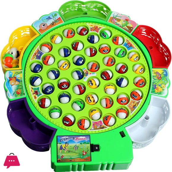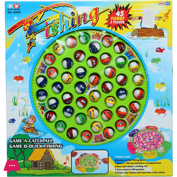 - What’s in the box – 1 rotating Fish pool; 4 pcs fishing rods; 45 pcs magnetic fishes; (not include batteries).