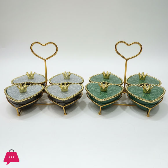 Four-Piece Porcelain Heart Shape Bowl with Stand