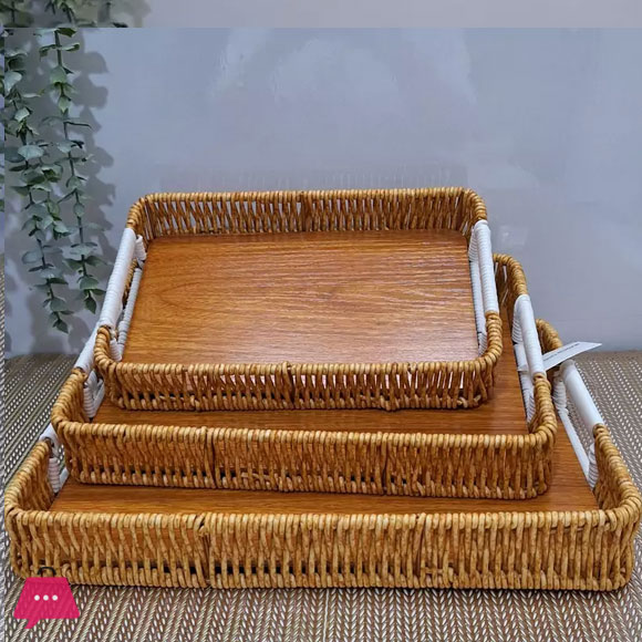 GIB cleaningtool Rectangular Rattan Serving Tray Decorative Woven Wicker Trays with Handles