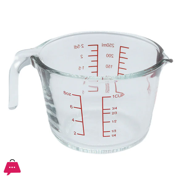 Measurements etched onto the Jug. Has tapered pouring rim for a smooth flow with no drips.