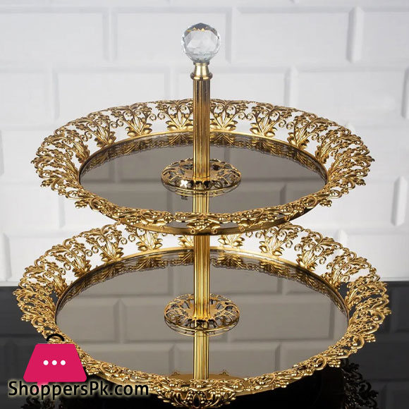Description: The trays can be used as a space saver to hold and display perfumes, jewelry, and makeup or can be used as the decorative piece you have been looking for. The top and bottom has a beautiful glass tray. It can be used in the kitchen for serving snacks or fruits.