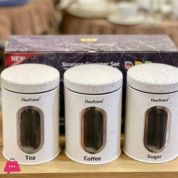 1 Sugar box, 1 Tea box, 1 Coffee box,