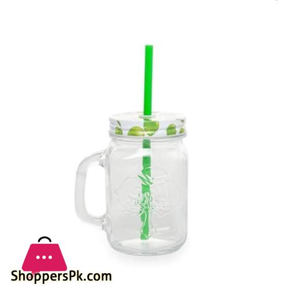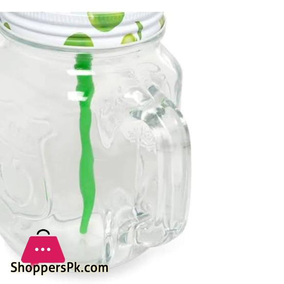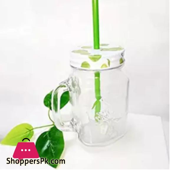 Heat Resistant Fruity Glass Mason Jar Mugs Fruit Juice Cups with Lid and Straw For Milk, Milkshakes Juices 490 ml