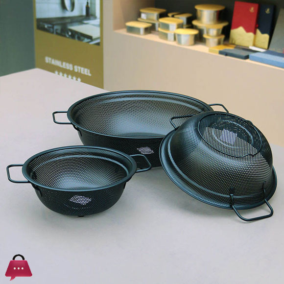 High Grade Stainless Steel Colander Bowl Set Small Hole Sink Colander Basket With Handle