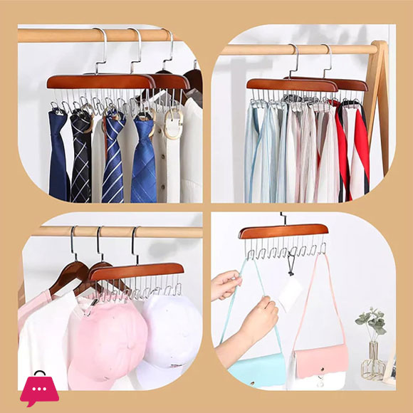 High Quality Wooden 8 Hook Clothes Hanger 360° Rotation 1Pcs