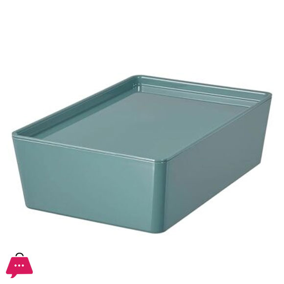 IKEA KUGGIS Storage Box with Lid, Turquoise 18x26x8 cm