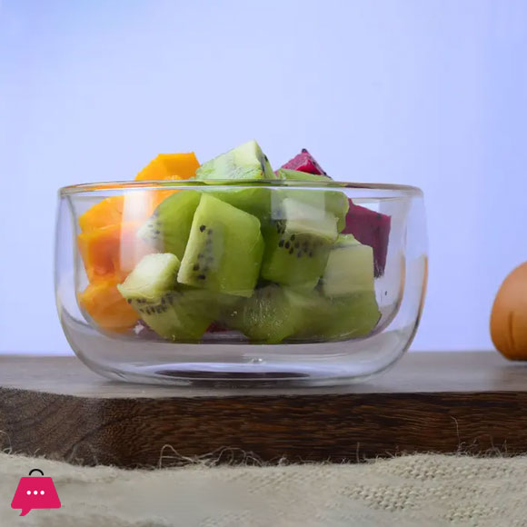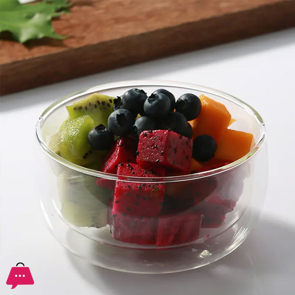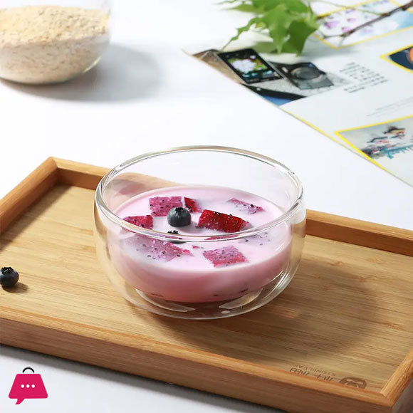 Insulated Double Wall Borosilicate Glass Salad Soup Icecream Serving Bowl