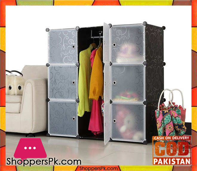 Intelligent Plastic Portable Cube Cabinet with hanging – 6 Cube