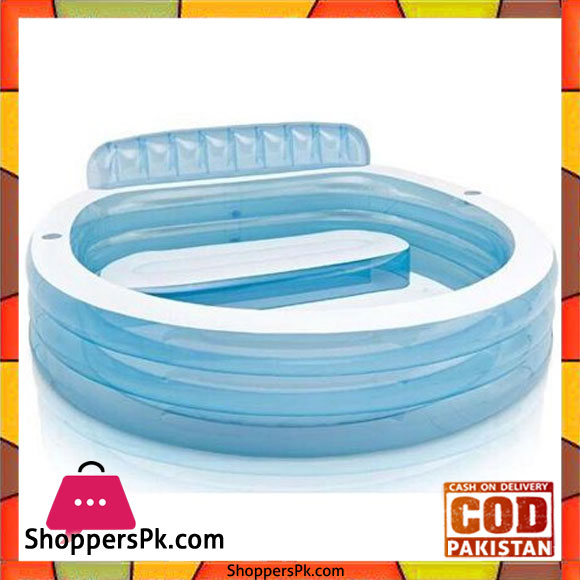 Take a splash in the Intex Swim Center Family Lounge Pool Remarkably easy to setup, the wim Center Family Lounge Pool requires simple quick inflation and is ready to fill with water and your little ones will be splashing and playing in minutes. Bring all the fun of the beach to your backyard and enjoy the colorful ocean graphics with the Add some color and style to your backyard with the Intex Swim CenterTM Family Lounge Pool.; Features: Parents can get cozy on the built-in-bench while they watch their little ones enjoy the water ; Ideal for the entire family, ages 3 and up ; Fast and easy relief from the summer sun ; Two air chambers, each with a combo valve are included for quick and easy inflation and deflation ; Built-in bench ; A drain plug is included for convenience ; This pool is simple and easy to store for enjoyment next season ; Approximate inflated size: 88″L x 85″W x 30″H ; Water Capacity: 169 gallons (12-1/2″ of wall height); Intex 57190ep Swim Center Family Lounge Po