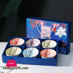 Japanese Style Korean 4.5 Inch Flower 6-Ceramic Bowl Set for Rice Soup Ramen