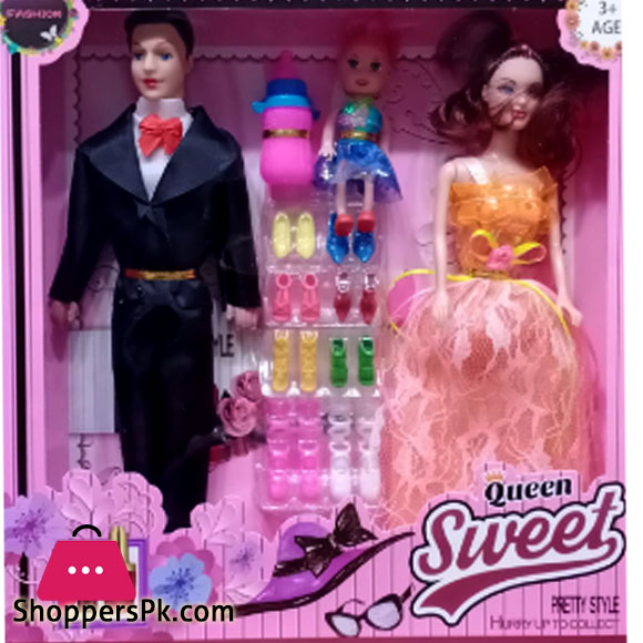 Kaizen Beautiful & Elegant Doll Wedding Couple Set -Barbie and Ken Gift Set-Multicolor (Pack of 2 with Baby)