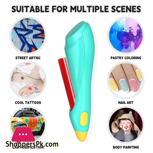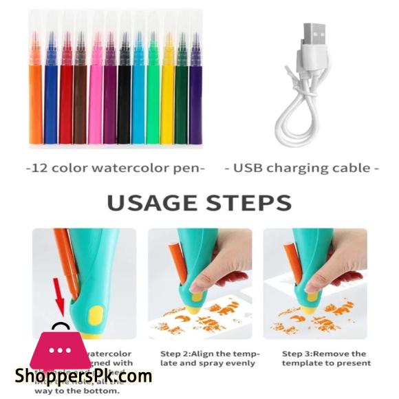 Kids Electric Graffiti Pen Set Magic Spray Washable Art Painting Markers Airbrush BlowPen Rechargeable 4 Stencils Doodle Drawing