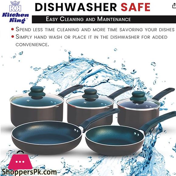 Kitchen King 8 Pieces Essentials Pots And Pans Cookware Set With Lids Non Stick Frying Pans PFOA Free (Black)