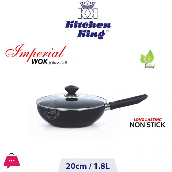 Kitchen King Imperial Wok Long Handle Glass Lid 20cm