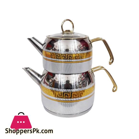 Turkish Kirk Maz Kettle Model 1627 Two separate doors for the kettle and teapot Cast iron kettle base Teapot capacity 1.3 liters Kettle capacity 2 liters Heavy and shiny sheet