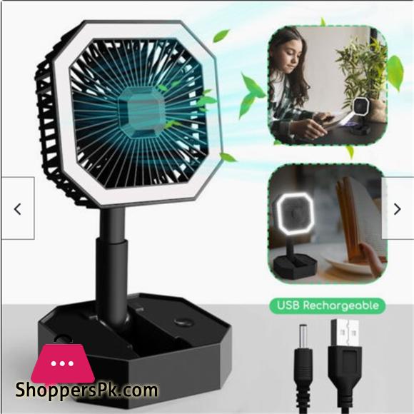 LE 2 In 1 Mini Cooling Fan With Led Light Portable Foldable Adjustable Height Angle Usb Rechargeable Air Cooler Fan