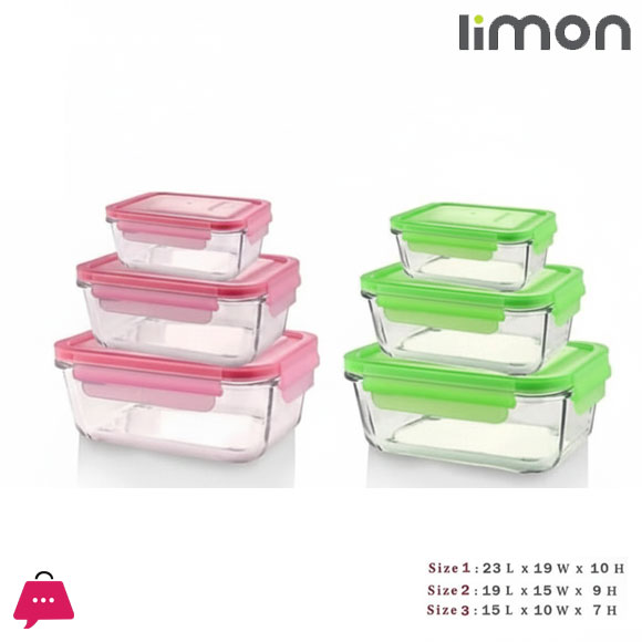 Limon Glass Container 3 Pcs Set With Plastic Lid