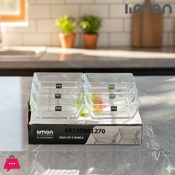 Made from premium quality Glass. Capacity 200 ML Limon Brand Made in Iran Square shaped multipurpose bowls that are vesatile for everyday use. Set of 3Bowls with sizes: 8 X 6 CM D