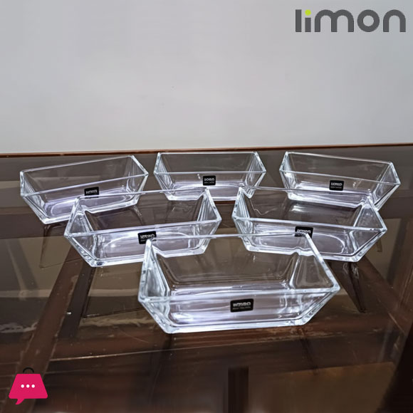 Limon Rectangle Dessert Glass Bowl Pack of 6 Pcs 200ml Iran Made