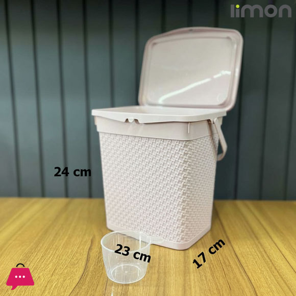 A versatile storage basket with a decorative woven texture, designed for organizing surf powder and various household items. It features a lid with a secure locking mechanism and a handle for easy transport and portability.