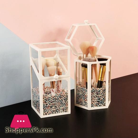 Makeup Brush Holder Cosmetic Storage Box Makeup Organizer Brush Pen with Cover Glass Made