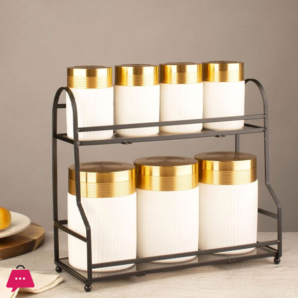 Be the first to review “Matt Black Porcelain Jar Porcelain Canister Set with Metal Stand – 8 Piece” Cancel reply