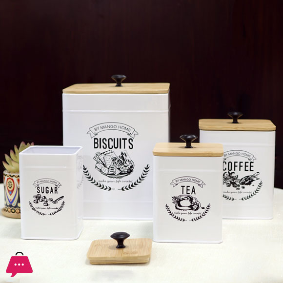Sizes: Biscuit: 8ltr, Coffee: 3ltr, Sugar: 1.3ltr and Tea: 1.7ltr.