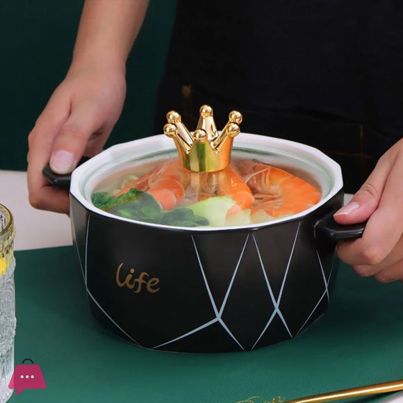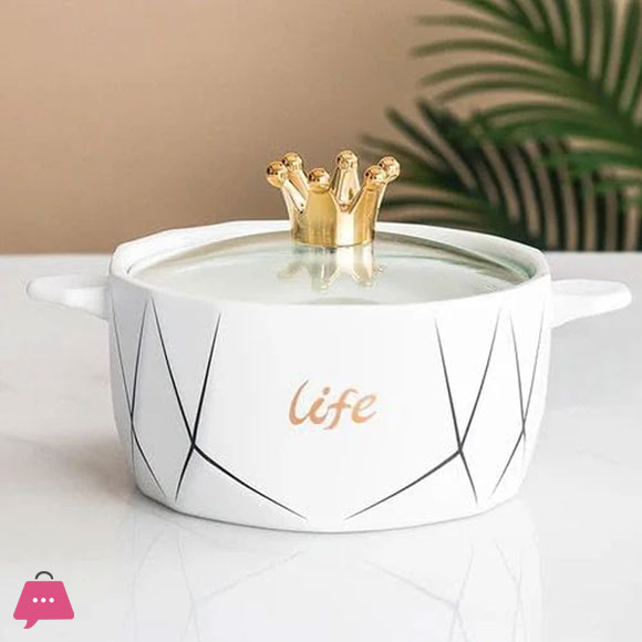 Mini Ceramic Serving Bowl with Glass Lid 1200ml