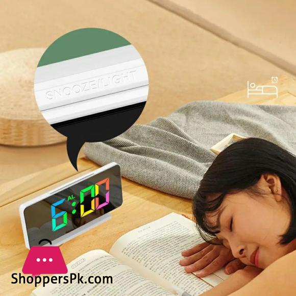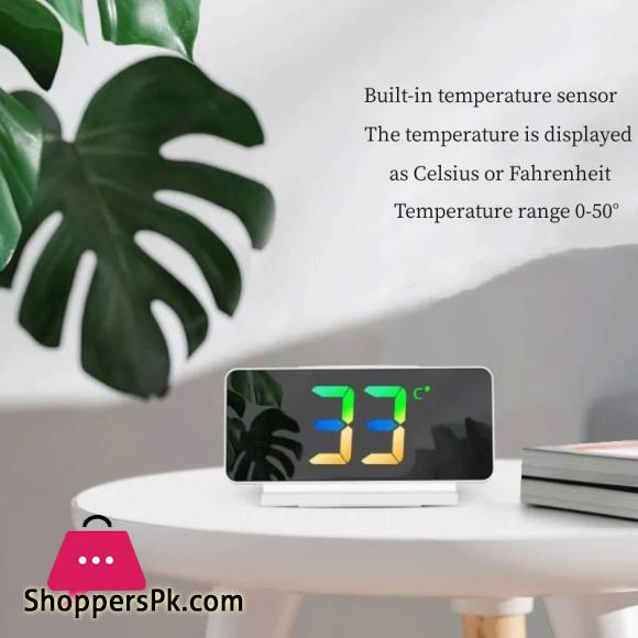 Mirror LED Digital Alarm Clock Temp Date Display Colorful Snooze Clock Brightness Adjustable 12/24 Electronic Rechargeable Clock