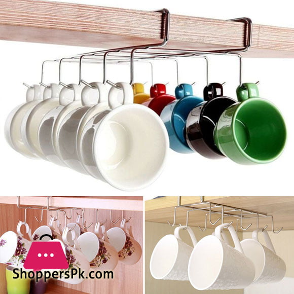 Under Shelf Storage 10 Hook Large Mugs Rack Holder Cupboard Table Cabinet Chrome