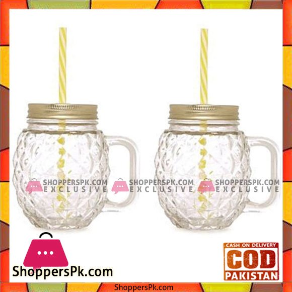 Glass Mason Jar Mugs Fruit Juice Cups with Lid and Straw For Milk, Milkshakes Juices 480 ml