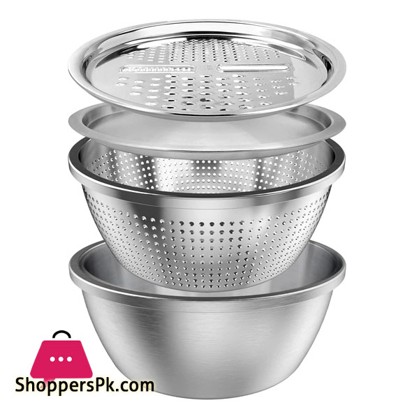 Multifunctional Stainless Steel Basin Grater – Salad Cutter Bowl-7 in 1 Julienne Slicer, Multifunctional Stainless Steel Colander Drain Basket for Cooking Prepping Food Storage