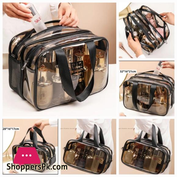 Portable and durable PVC transparent bag with sturdy zipper quality. Light weight and large capacity.