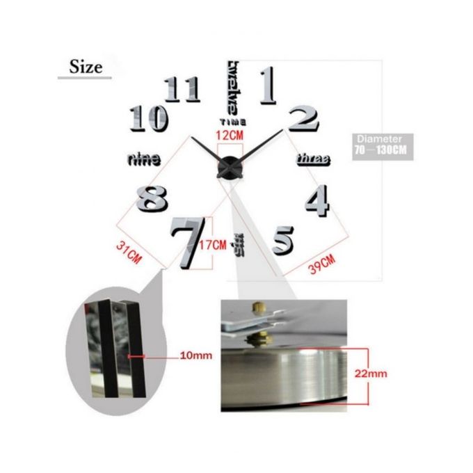 Stickers made of EVA Foam Material and Mirror material,which is non toxic and non fading ,can last for about 3-5 years. Stickers can be removable ,with glue on the backside, easy to paste on the wall or any other clean and smooth surface; such as door ,the closet and so on; The mirror with glue, before to paste the sticker on the wall, you need to paste the mirror on the sticker surface first; Diy design, clock layout size measured by hands, can be adjust to be smaller or bigger size this is a 3D wall clock,very nice one,high quality one.