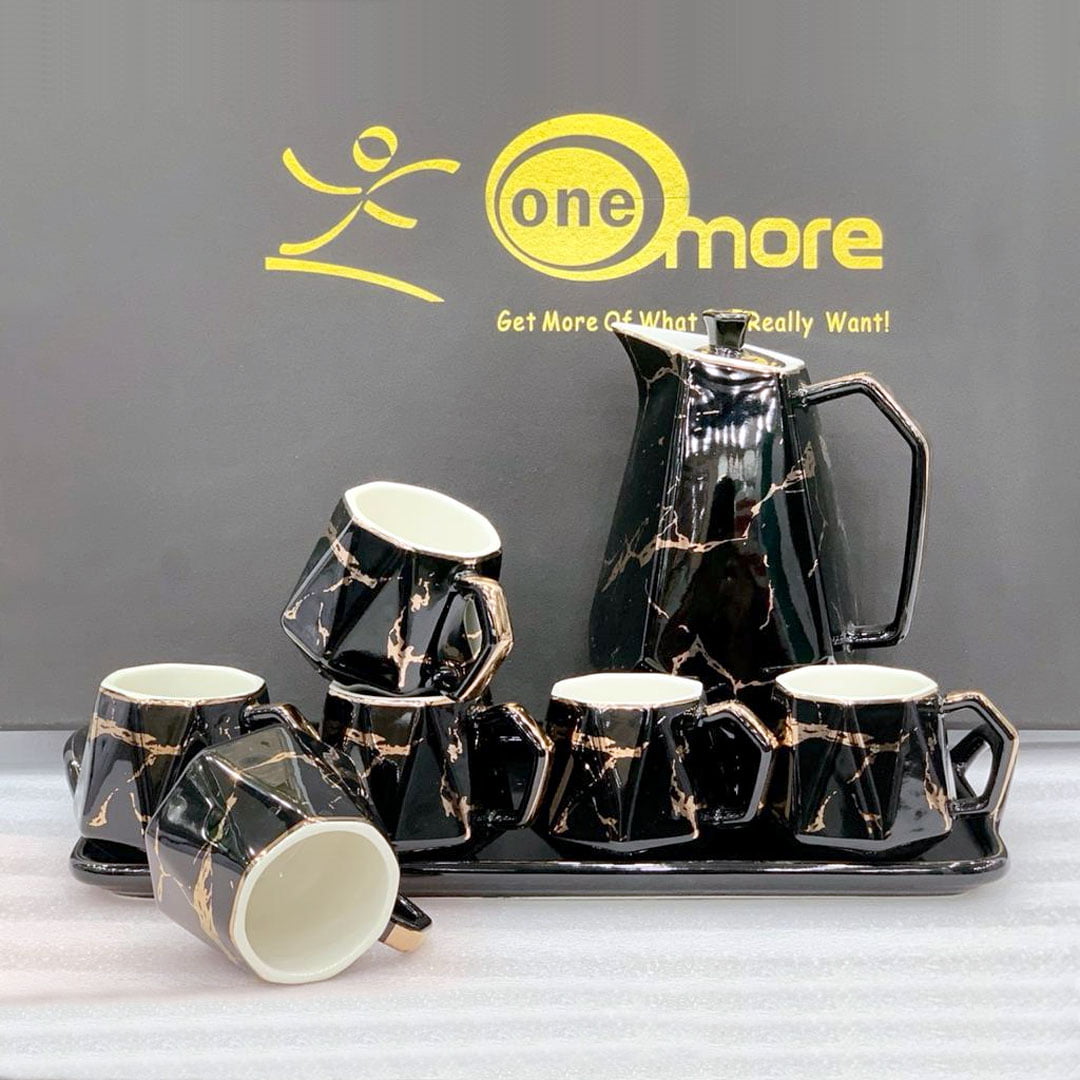 One More Black N Gold Ceramic Tea Set 8 Pcs