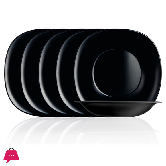 Opal Black Glass Marble Soup Plate 23cm 6-Pcs