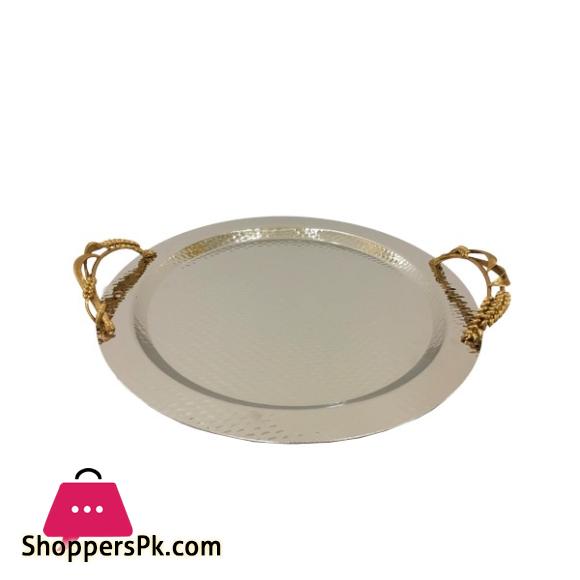 Orchid Round Serving Tray With Handle Silver 37CM 1Pcs CD6705