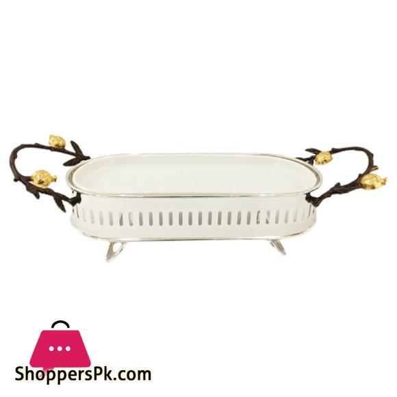 ORCHID Silver Glass Serving Dish With Golden Handles Small WB1179