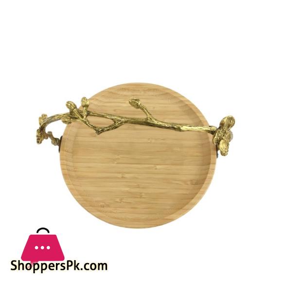 ORCHID Wooden Round Serving Basket With Golden Handle 20cm WB683